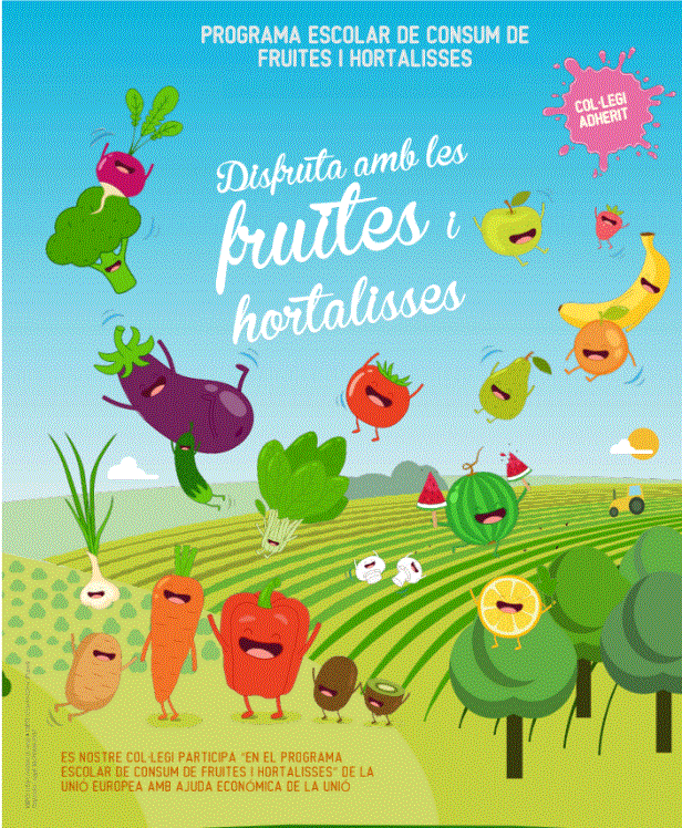A partir del dimecres 15 d’abril i fins al 10 de juny, els alumnes rebran setmanalment diferents varietats de fruita: suc de taronja 100% natural, taronja, manderina, albercoc, préssec, maduixes i nectarina.